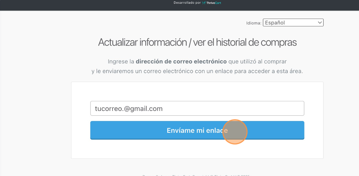 Introduce el correo electrónico con el que realizaste la compra y envía la solicitud.