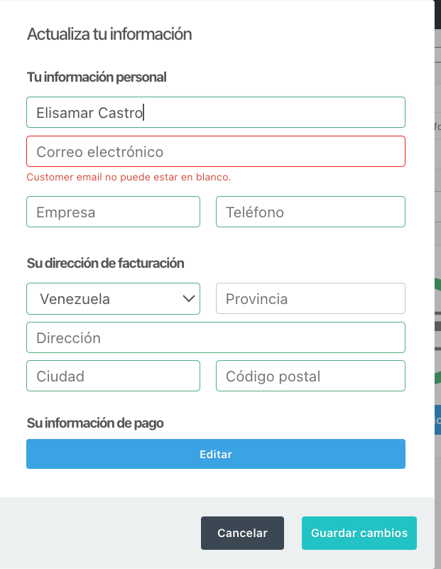 - Completa todos los datos solicitados (nombre fiscal, dirección, etc.)
